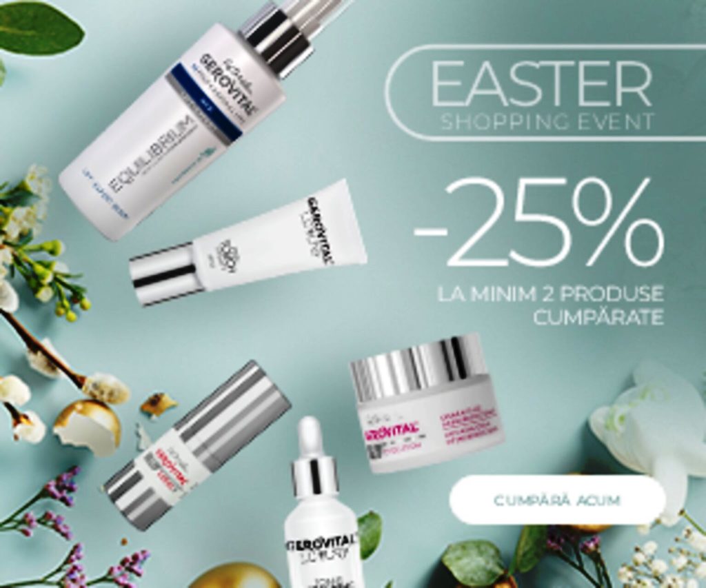 Profită acum de oportunitatea de a investi în imaginea și sănătatea ta. Campania Easter Shopping Event aduce o reducere de 25% direct în coș pentru orice comandă de minimum două produse, exclusiv online pe Farmec.ro.