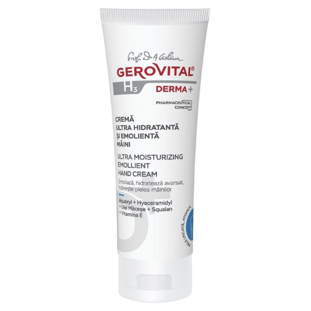 Pentru femeile active, mâinile sunt printre primele zone afectate de frig, vânt și spălări repetate. Cremă de Mâini Ultra Hidratantă și Emolientă cu Ulei de Măceșe și Vitamine E, Gerovital H3 Derma+, este concepută special pentru pielea foarte uscată. Formula sa hidratează avansat, hrănește intens și contribuie la refacerea lipidelor din piele, fără a lăsa senzație grasă.